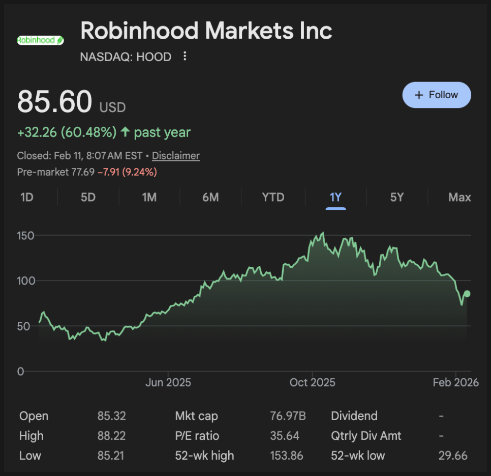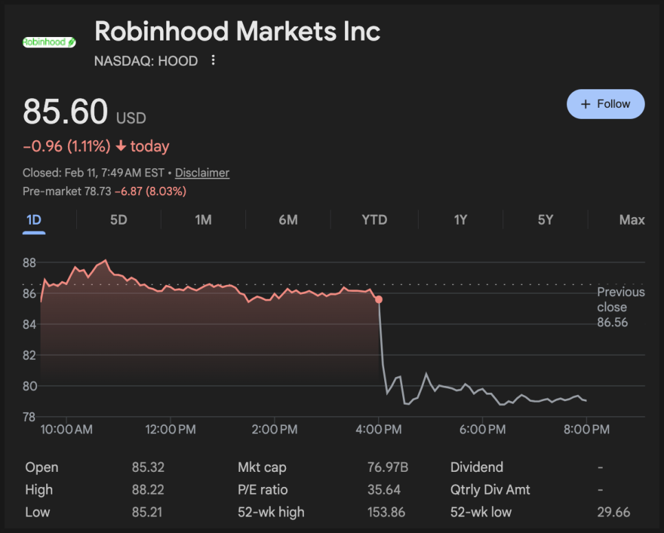 연간 기준으로는 사상 최대 매출을 기록했고 주당순이익도 예상치를 웃돌았지만, 정작 주가는 실적 발표 이후 조정을 받았죠. 이유가 뭐냐, 4분기 매출이 전년 대비 성장하긴 했지만 월가 기대치에는 미치지 못했고, 특히 암호화폐 거래 수익이 크게 둔화됐기 때문입니다. 때문에 투자자들은 이제 이 회사의 성장이 얼마나 지속 가능할지 다시 계산하고 있는 상황입니다.