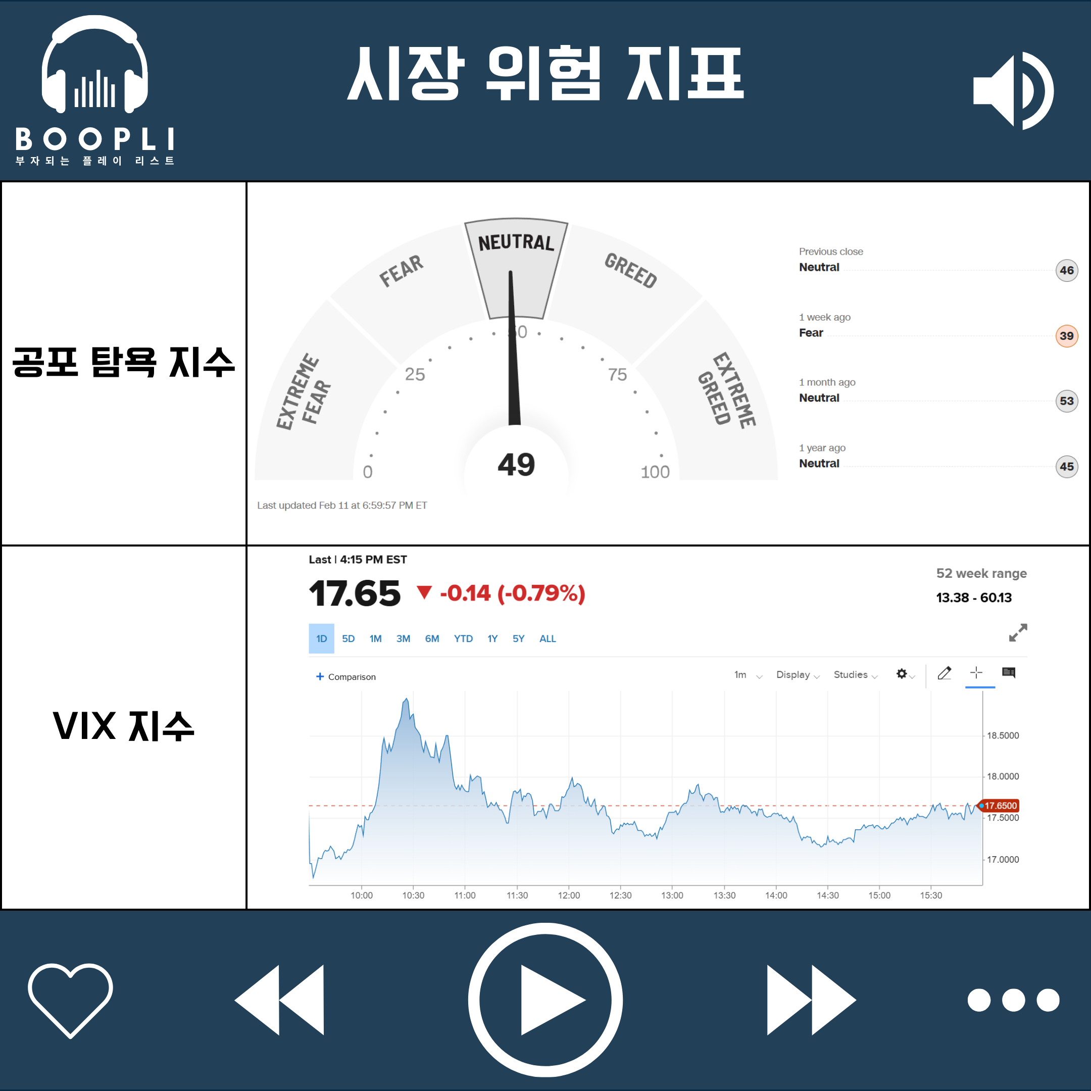 시장 변동성을 나타내는 VIX 지수는 소폭 하락하면서 변동성 완화