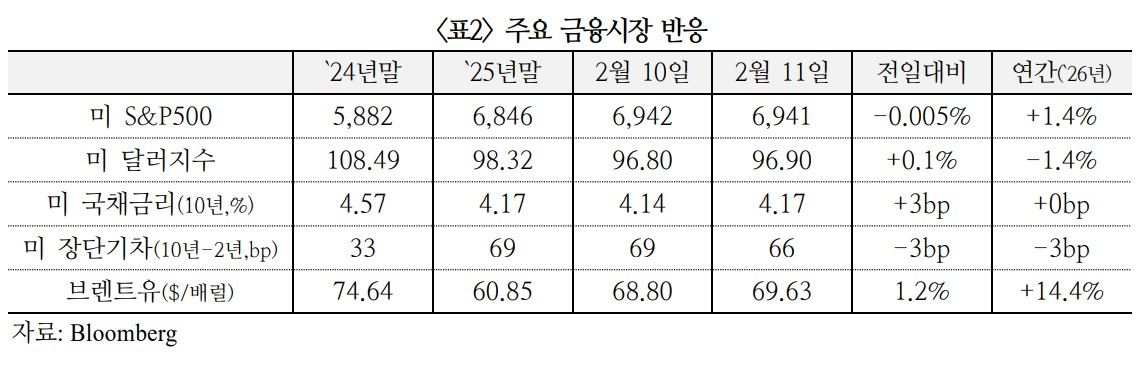 ㅇ 10년물(4.17%, 3bp) 및 2년물(3.51%, 6bp) 국채금리는 1월 고용지표가 예상을 큰 폭으로 상회함에 따라 연준이 신중한 정책기조를 이어갈 것으로 예상되며 상승