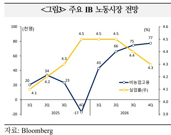 - 금리인하에 요구되는 실업률 수준(4.7~5%)이 높은 것으로 추정되는 가운데 6월까지 실업률이 현수준을 유지하거나 추가 하락할 경우 차기 연준 의장 취임에도 불구 연말까지 금리가 동결될 가능성(BoA)