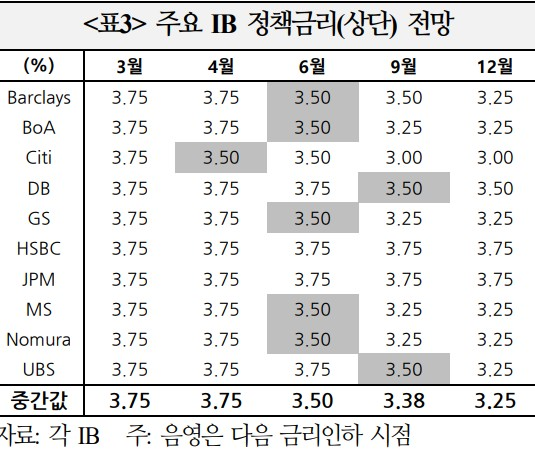 * 다음 금리인하 시점으로 10개 IB 중 1곳은 4월, 7곳은 6월 이후, 2곳은 연내 동결을 예상
