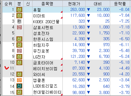 전일 강세였던 피지컬 AI 관련주와 유통주 등도 하락