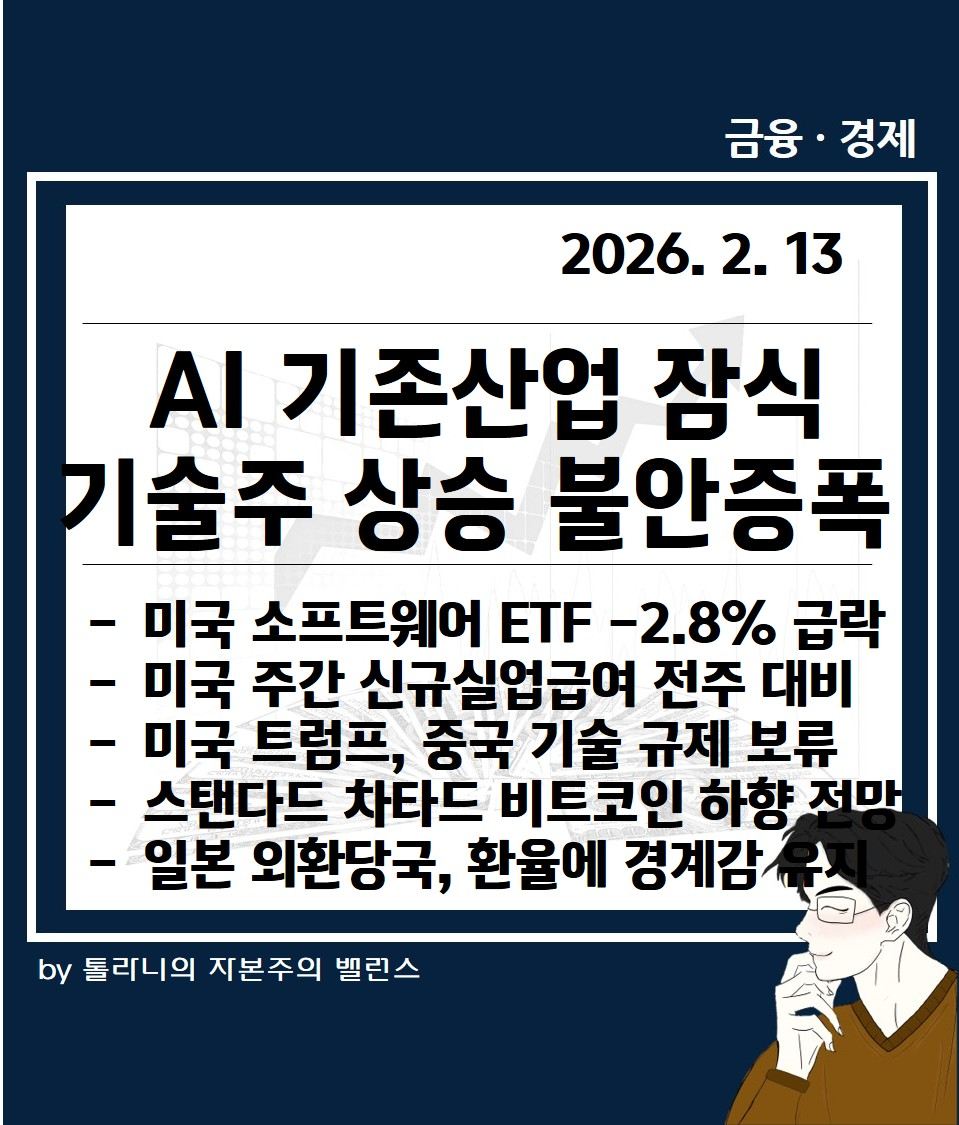 지금까지 'AI 기존산업 잠식, 소프트웨어 ETF 2.8% 급락 등 기술주 상승 불안 증폭 등 주요 국각 경제·금융 동향' 관련하여 알아보았는데요.
