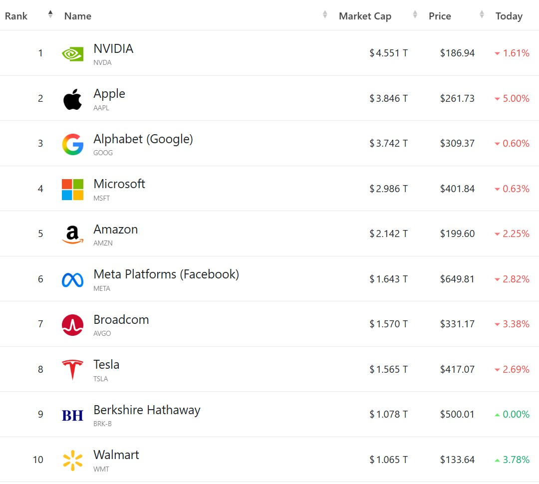 엔비디아는 전일 대비 전일 대비 -1.64% 하락하였으며, 애플은 -5.00% 큰 폭으로 급락하였습니다. 마이크로소프트 -0.63%, 아마존 -2.19%, 알파벳 -0.63%, 메타 -2.82%, 테슬라 -2.62% 일제히 하락하면서 거래를 마쳤습니다.