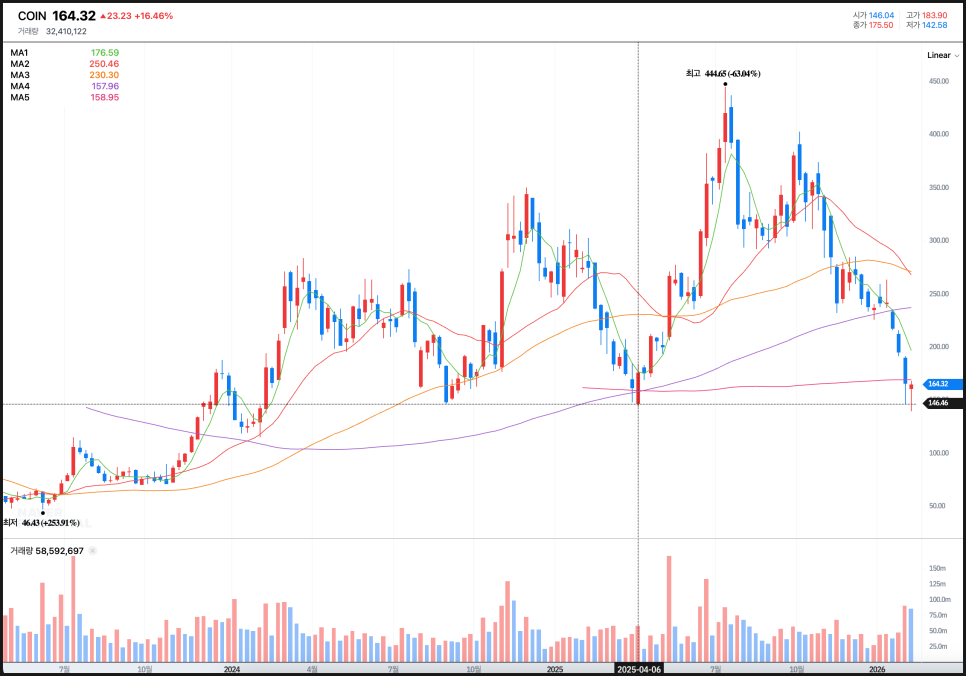 코인 거래 활동이 둔화되고 가격이 조정을 받으면서 거래 수수료 수익이 떨어진 결과 약 6억 6,700만 달러 규모의 순손실을 기록했습니다. 일부 애널리스트들은 매수 의견은 유지하면서 목표주가를 낮춘 곳도 많았는데요. 그런데 흥미로운 점은 이런 대규모 손실 발표 이후에도 주가가 오히려 반등했다는 사실입니다.