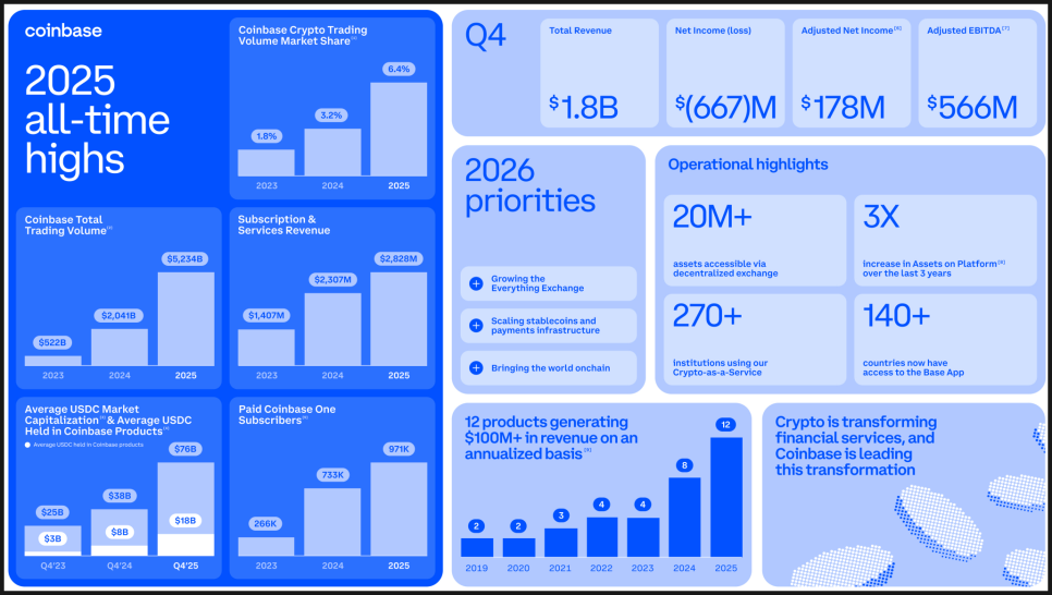 코인베이스 글로벌(Coinbase Global Inc)이 2025년 4분기 실적을 발표했습니다.