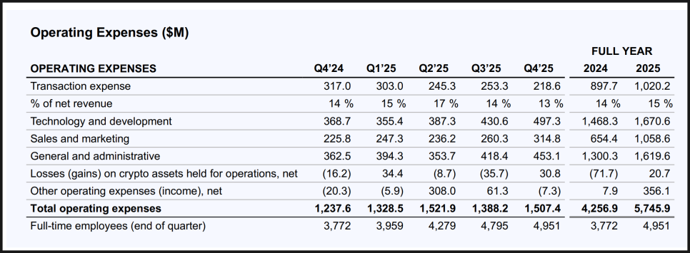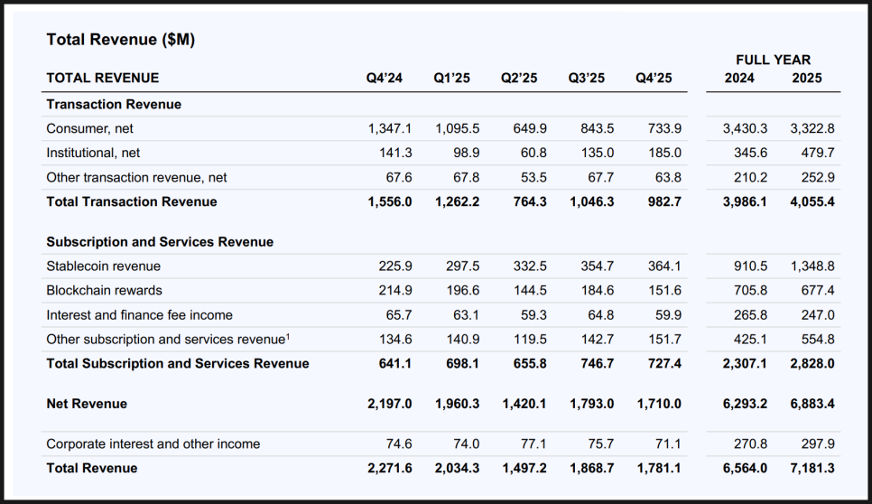 다만 4분기에는 매출 17억 8천만 달러를 기록했는데 전년 동기 대비 22% 감소한 수치이며, 시장 예상치였던 18억 4천만 달러에도 미치지 못했습니다. 순손실은 6억 6,700만 달러로, 1년 전 13억 달러 흑자를 기록했던 것과는 대조적인 결과입니다. 당시에는 도널드 트럼프(Donald Trump) 대통령의 재선 이후 암호화폐 시장이 급등하면서 거래가 크게 늘어났던 시기였습니다.
