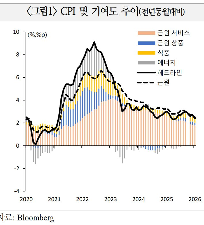 1월 CPI 보고서의 표면적 안정세에도 불구하고 이면에는 ▲관세의 소비자 전가 관측 ▲비주거 서비스 오름세 등 인플레이션 경직성이 잔존하고 있어 연준은 신중한 정책기조를 이어갈 것으로 예상