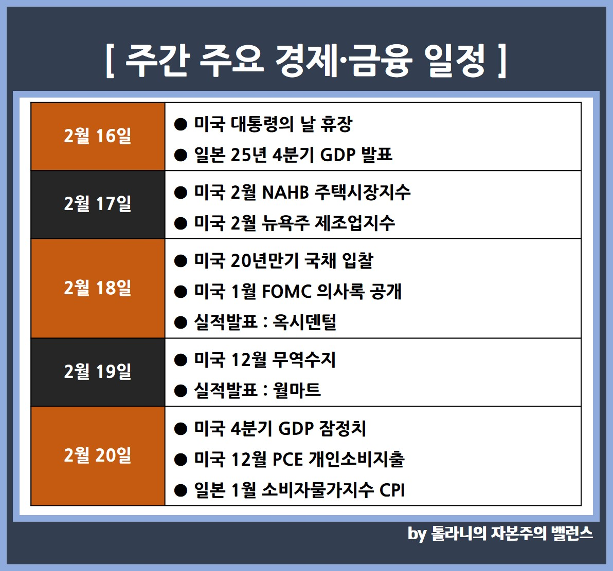 01. 미국 및 주요 국가 주간 증시 일정