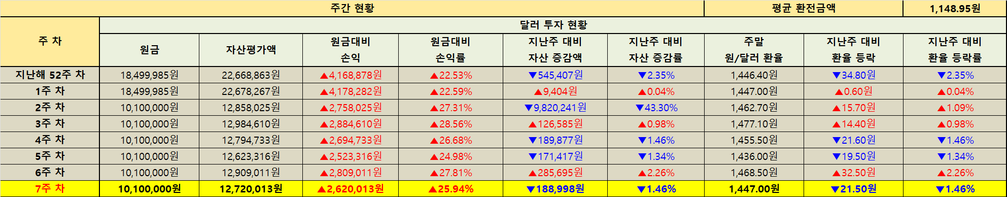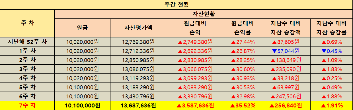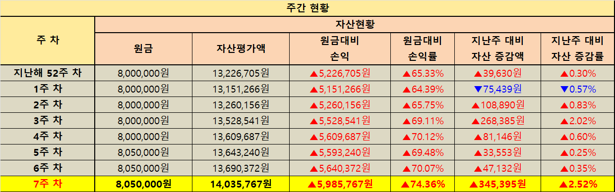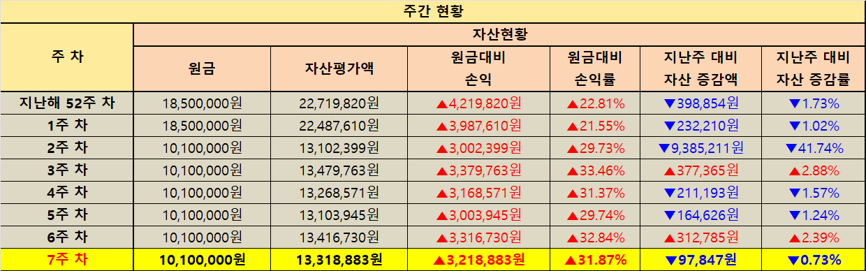 지난주 대비 자산 증감 현황