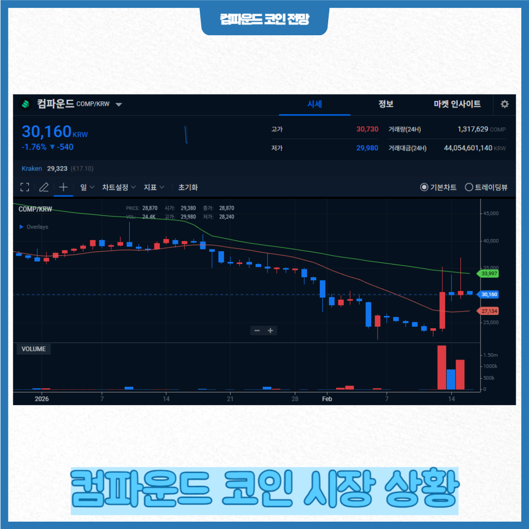 디파이 시장이 확장되고 유동성 공급이 증가하면, 프로토콜 사용량 증가 → COMP 토큰 활용 및 수요 확대로 이어질 가능성이 있습니다. 이러한 펀더멘탈 개선은 가격에 긍정적인 영향을 줄 수 있습니다.