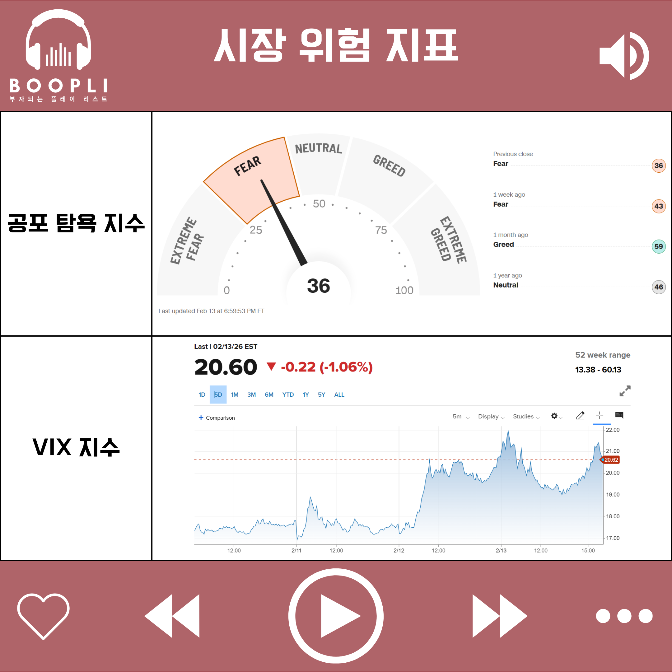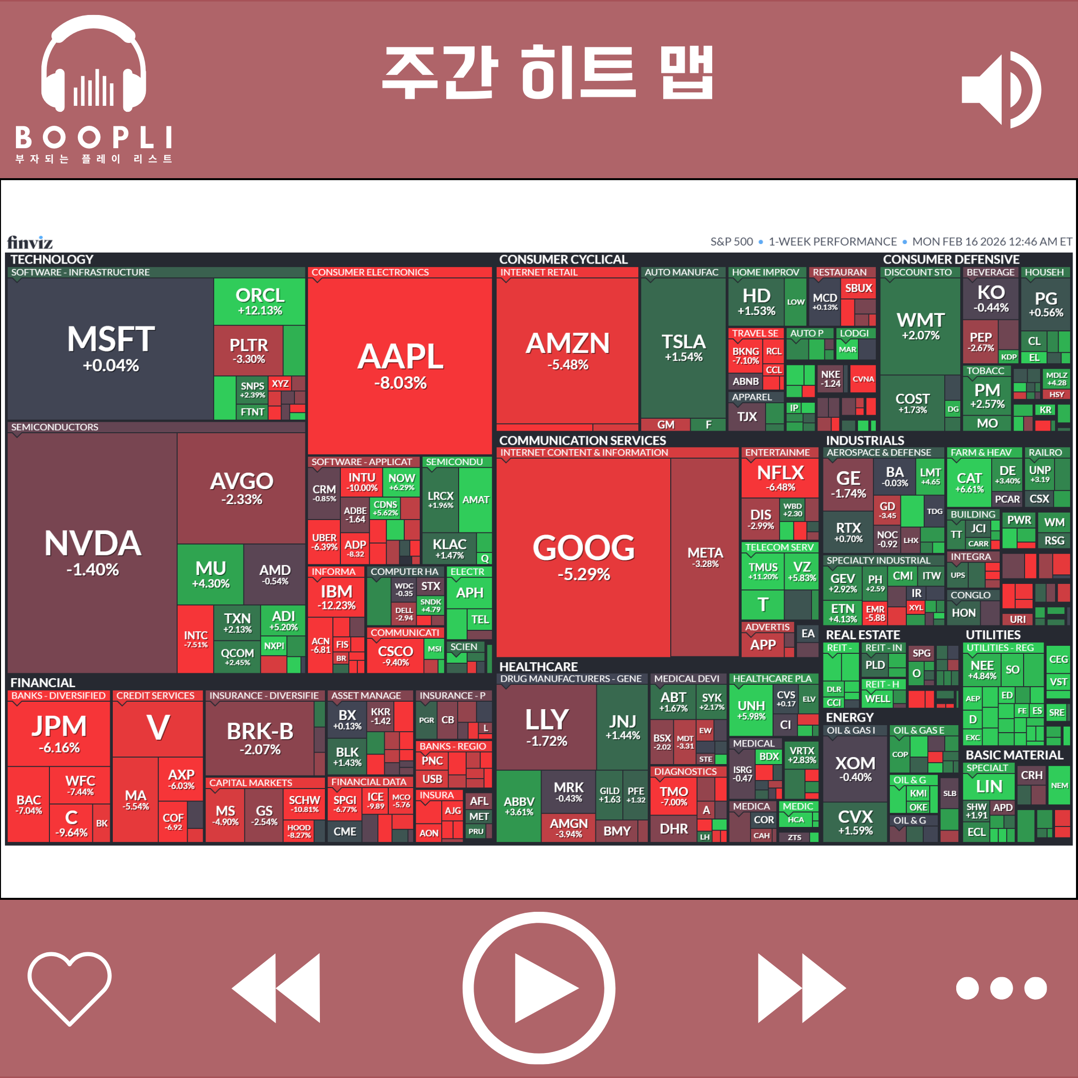 반면, AI 산업 재편 우려가 확산되면서 금융 섹터가 하락을 주도했고, 이어서 커뮤니케이션 서비스, 소비 순환재, 기술 순으로 약세를 보였다.