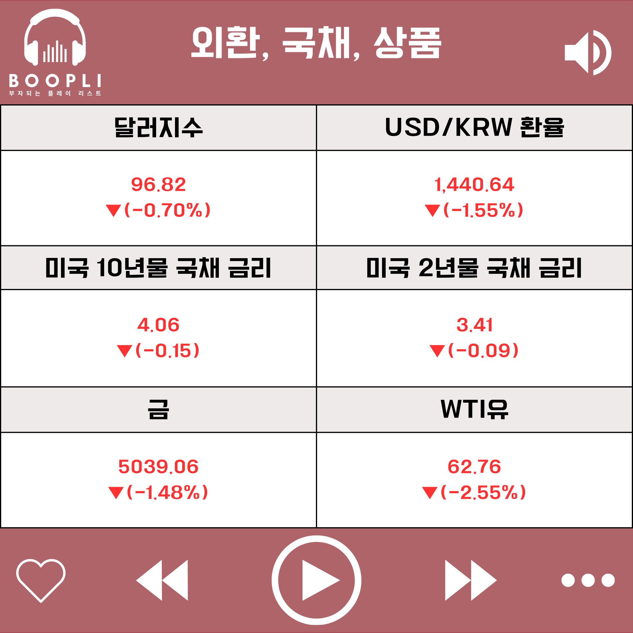 달러지수와 USD/KRW 환율은 모두 하락하며 달러 약세를 보였다.