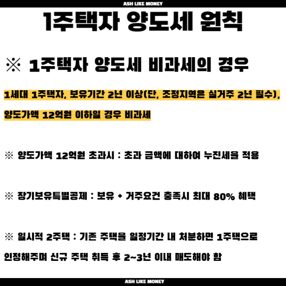 이제는 1주택자라도 비거주한다면 양도세 혜택을 받을 수 없을지도 모른다. 하지만 기준이 명확하지 않다. 왜냐하면, 대통령 역시 비거주 1주택자이기 때문이다. 사람들 역시 취업이나, 결혼, 이민 등의 다양한 사정으로 인해 비거주 1주택을 유지하는 사람들도 많기에 비거주 1주택자 역시 적폐라는 것은 말에 어폐가 있다. 그래도 가장 유력한 것은 "한번이라도 실거주한 집"이라는 것이다. 처음부터 전세를 준 사람들은 투기이고 한번이라도 실거주한 사람들은 사정이 있는 것으로 보는 것이 가장 유력한 조건이다.