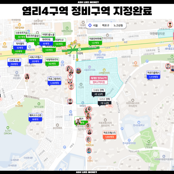 드디어 염리4구역이 정비구역 지정이 완료되었다. 염리5구역은 KT부지 이슈가 있기 때문에 땅 모양이 고르지 않고 시간이 지체되는 면이 있지만, 염리4구역은 정비구역 지정공람 후 작년 지정이 되었다. 마포는 아현동, 공덕동, 신공덕동, 염리동, 용강동을 중심으로 30억 클럽의 신축 아파트들이 모여있다. 마포가 이렇게 크게 성장하게 된 이유로는 여의도, 광화문, 종로 접근성이 좋으며 IT, 미디어, 스타트업 기업들이 몰렸기 때문이다. 그 덕에 고소득 젊은 직장인들이 모이게 되며 지금의 가격이 형성되었다. 오죽하면 마포에 개집이라도 사둘걸이라면서 후회하고 있다.