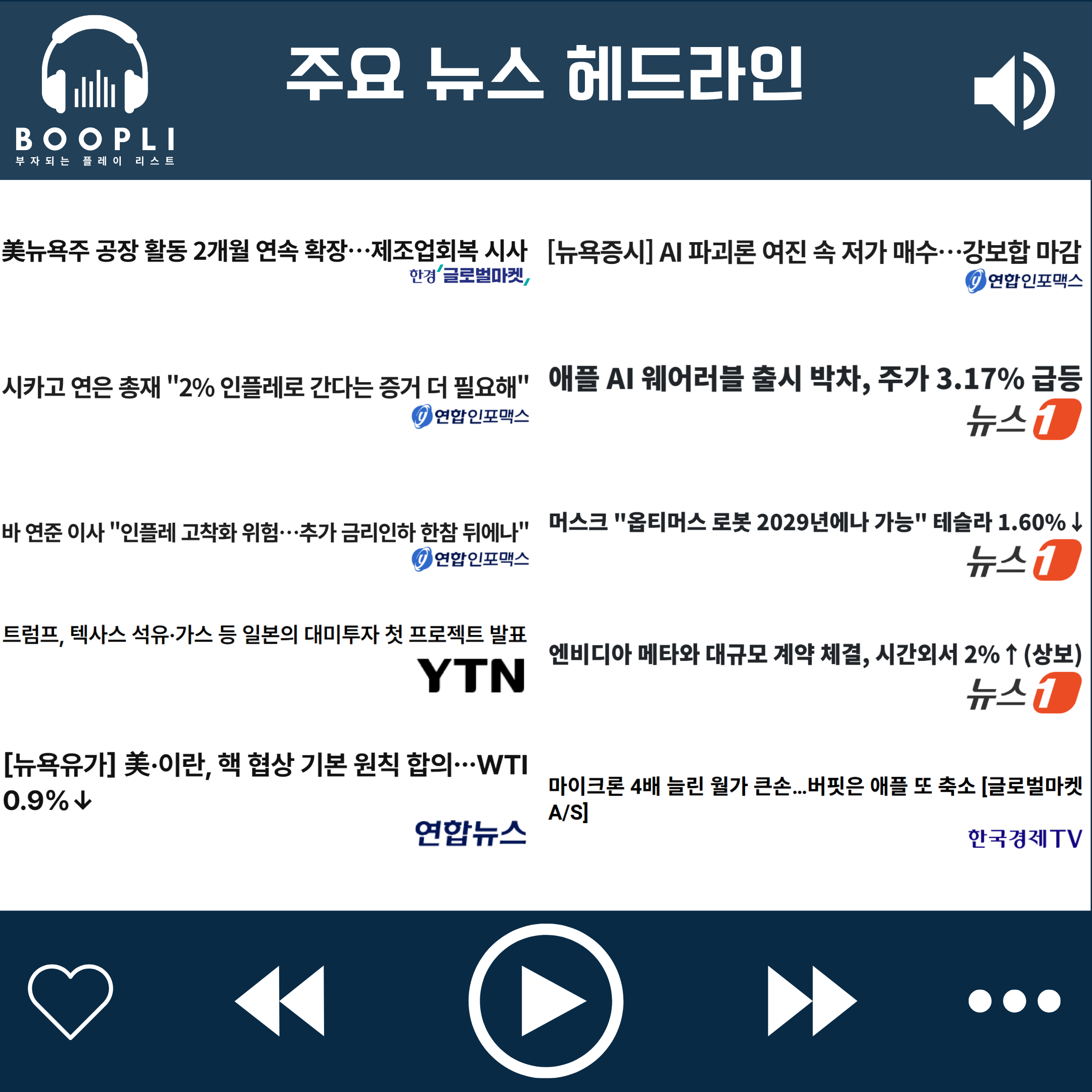 애플(AAPL) 안경, 펜던트, 에어팟 등 AI 기능이 탑재된 세 가지 신형 웨어러블 기기 개발을 가속화하고 있다는 소식, 올해 봄 자사 팟캐스트 애플리케이션에 통합 영상 기능을 추가하며 영상 팟캐스트 시장에 진출한다는 소식에 상승