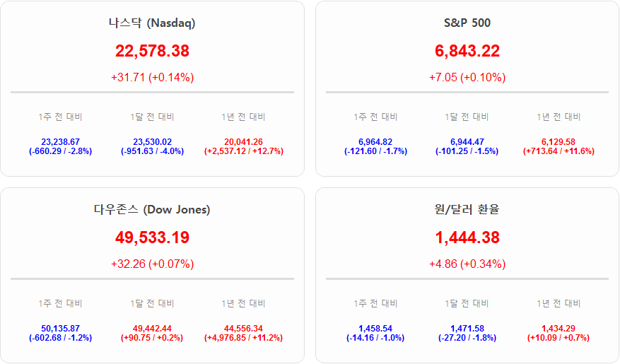 현재 시장의 심리 지표는 공포 단계에 머물러 있으며 이는 인공지능이 가져올 파괴적 혁신이 기업의 이익보다는 산업 붕괴를 초래할 수 있다는 불안감을 반영하고 있습니다. 제조업 지표가 보여주는 견조한 펀더멘털에도 불구하고 증시가 민감하게 반응하는 이유는 그동안 AI 열풍으로 높아진 밸류에이션에 대한 피로감과 자본 투입 대비 성과에 대한 의구심이 동시에 작용했기 때문입니다. 원/달러 환율이 1,444원대를 기록하며 상승 압력을 받는 가운데 제조업 부문의 인플레이션 압력이 여전하다는 점은 연준의 금리 정책 결정에 있어 신중론을 뒷받침하는 근거가 되고 있습니다. 결국 현재 시장은 실물 경제의 온기와 기술적 전환기의 진통 사이에서 방향성을 탐색하는 변동성 국면에 진입해 있다고 볼 수 있습니다.