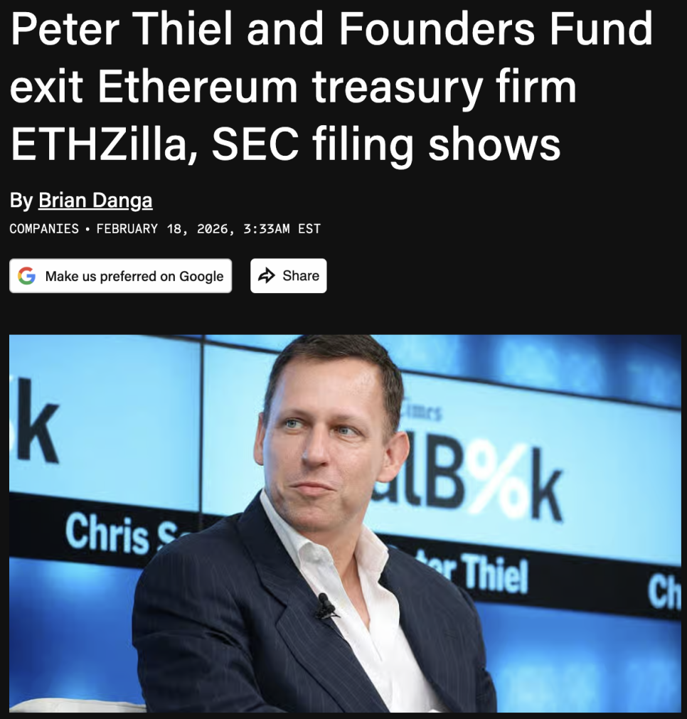 실리콘밸리의 대표적인 투자자 피터 틸(Peter Thiel)이 이더리움 재무 전략 기업 이더질라(ETHZilla)에서 완전히 빠져나왔다는 소식입니다.