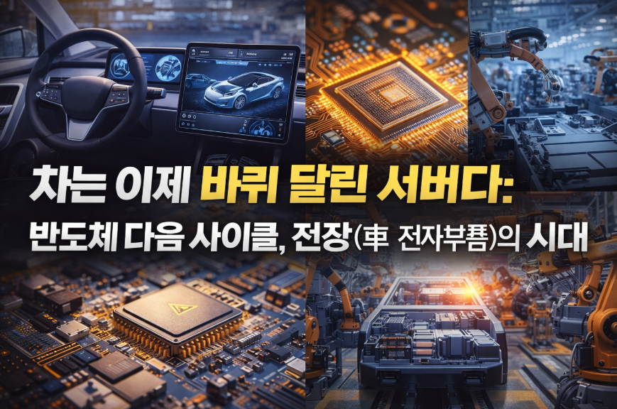 차는 더 이상 단순한 기계가 아닙니다. 바퀴 달린 스마트폰, 혹은 움직이는 데이터센터에 가깝습니다. 이 변화의 핵심이 바로 ‘전장(車 전자부품)’입니다. 엔진 출력이나 디자인이 아니라, 차량 안에 얼마나 많은 반도체와 전자제어 시스템이 들어가느냐가 경쟁력을 좌우하는 시대입니다. 그래서 저는 반도체 다음 사이클을 이야기할 때, 메모리만 보지 말고 ‘전장’이라는 단어를 함께 봐야 한다고 생각합니다.