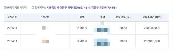 다른 서울 내 모아타운 구역에서 보정계수를 적용하고 있다. 서울 평균 지가보다 낮은 동네의 경우 보정계수를 적용하여 조합원들의 분담금을 줄일 수 있다. 둔촌동의 경우도 올림픽파크포레온을 제외한 동네는 보정계수를 적용하는데 1.2~1.4배하여 공시지가를 올릴 수 있다. 그 덕에 보정계수 + 감정평가액 보정률까지 하여 감정평가액을 더 상승시켜 내 집의 가치를 올릴 수 있다. 여기에 비례율을 곱하여 권리가액을 구하면 당연히 분담금이 줄어드는 효과가 있다.