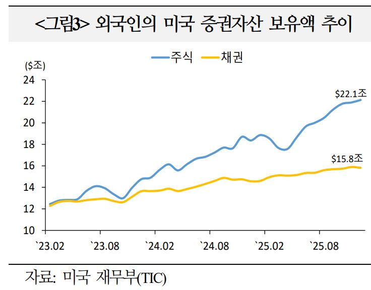 AI 산업에 대한 투자수요와 연준의 통화정책 완화 기대 등을 바탕으로 금년중 외국인의 미국 증권투자가 유지될 것이라는 견해가 상당