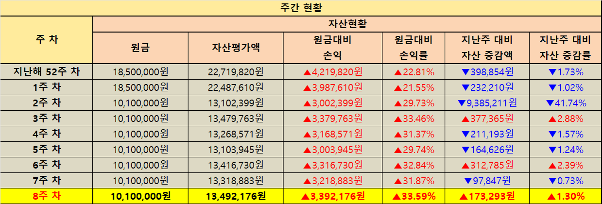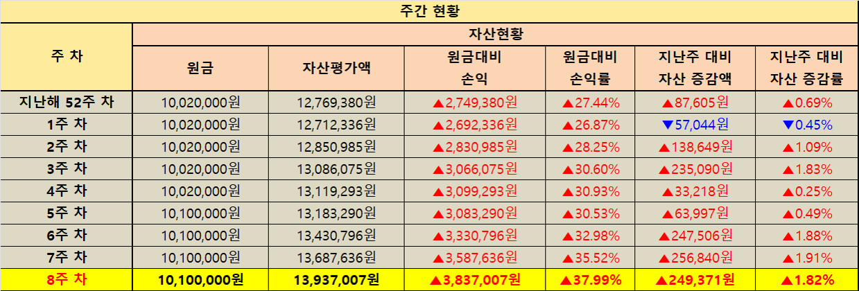 📈 한 주간의 전체 자산 흐름과 압도적인 수익률의 기록