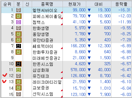 한편 금융주가 단기 급등에 따른 차익실현 매물 출회에 대부분 하락 전환했으며, 일부 2차전지주와 로봇주가 하락