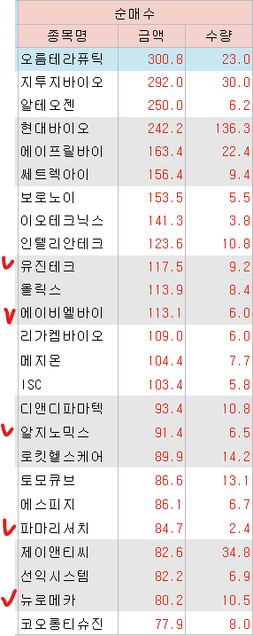 매수 : 맥쿼리인프라 골프존 에이비엘바이오 알지노믹스 파마리서치 뉴로메카 Tiger차이나전기차 HPSP 에이치브이엠 유진테크 레이크머티리얼즈 Tiger반도체TOP10레버리지