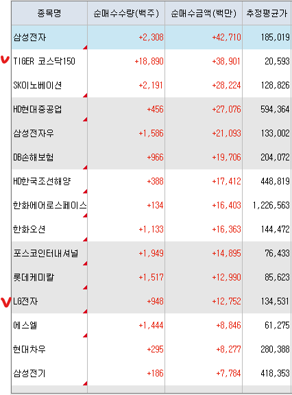 외국인은 KOSPI를 -1조5,404억 원, 선물을 -1조4,553억 원을 순매도했음. KOSPI에서 운송장비/부품과 제약 업종을 매수했고, 전기/전자와 금융 업종을 매도