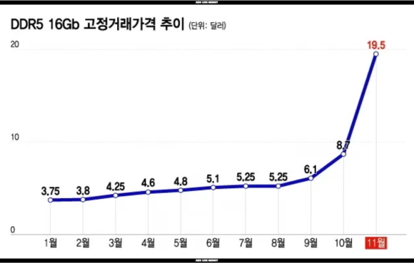 DDR5는 1년 전보다 171%나 상승하였고 일부 제품은 4배까지나 올랐다. 게다가 메모리 반도체의 경우 마이크론, 삼성, 하이닉스의 소수 기업이 시장을 지배하여 공급부족이 26년에도 이어질 것으로 보인다.
