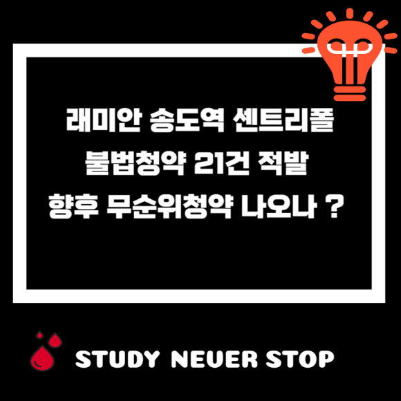 그런데 송도가 아닌 송도, 래미안 송도역 센트리폴의 불법행위 21건으로 인해 아파트 재공급이 이루어질 확률이 높아진다. 오늘은 송도 래미안 송도역 센트리폴 불법청약 적발 무순위청약 나오나 ?에 대한 포스팅입니다.