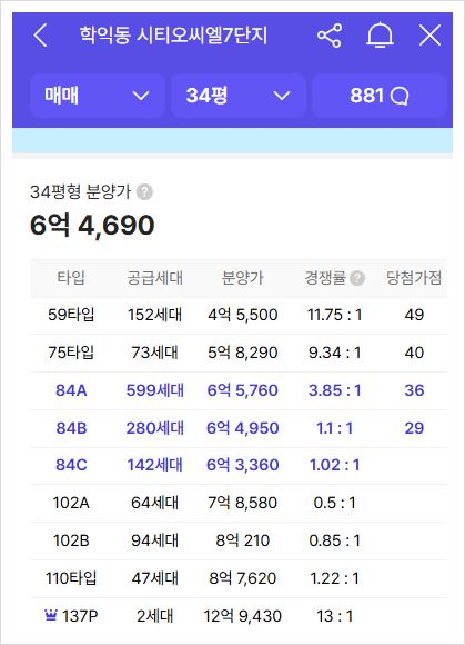 비규제지역이기에 전매제한 1년, 재당첨제한 및 거주의무가 없다. 그런데 6.27대책 이후 최대 대출이 6억 한도로 규제된다. 85㎡ 이하 가점제 40%, 추첨제 60%이고 85㎡ 초과는 추첨제 100%로 분양을 했다. 비규제지역이라 LTV는 70%까지 가능하지만, DSR 40%에다 스트레스 DSR까지 적용되어 수도권 지역은 대출 한도가 더 감소하였으므로 개인 DSR에 맞게 대출 전략을 잘 짜야한다.