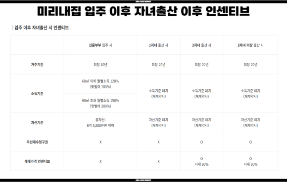 미리내집이란, 서울시가 추진하고 있는 신주택공급 정책으로 청년과 신혼부부를 중심으로 공급한다. 미리 + 내집일 수도 있고 미리내 + 집일 수도 있는 의미를 담고 있는데, "미리내"는 "은하수"를 뜻한다. 이는 내집 마련의 꿈을 이어주는 길이라는 좋은 의미를 담고 있는데, 청년과 신혼부부들이 갈수록 올라가는 집값에 희망을 가질 수 있도록 장기전세주택을 공급한다. 물론, 청년들이 해당 집에 거주하면서 열심히 돈을 모아 "진짜 내집"을 마련하는 것까지가 중요하고 최후엔 시세 대비 80%까지 저렴하게 살 수 있지만, 아이가 있어야 하는 필요조건이 붙는다.