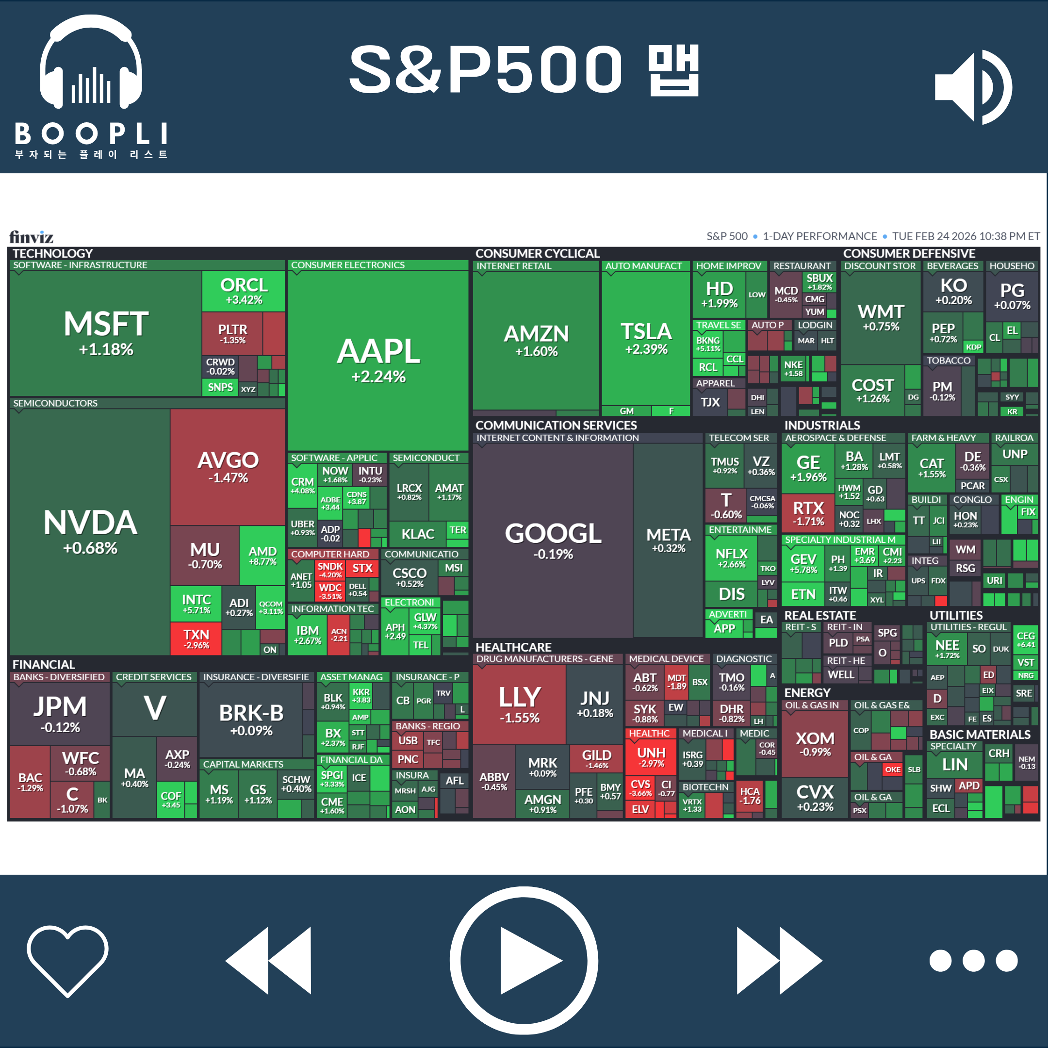 앤트로픽과 소프트웨어 기업들의 협업 발표로 과도한 AI 파괴론이 완화되며 기술 섹터가 상승 주도, 이어서 산업재, 소비 순환재, 원자재, 유틸리티, 경기 방어주 순으로 강세
