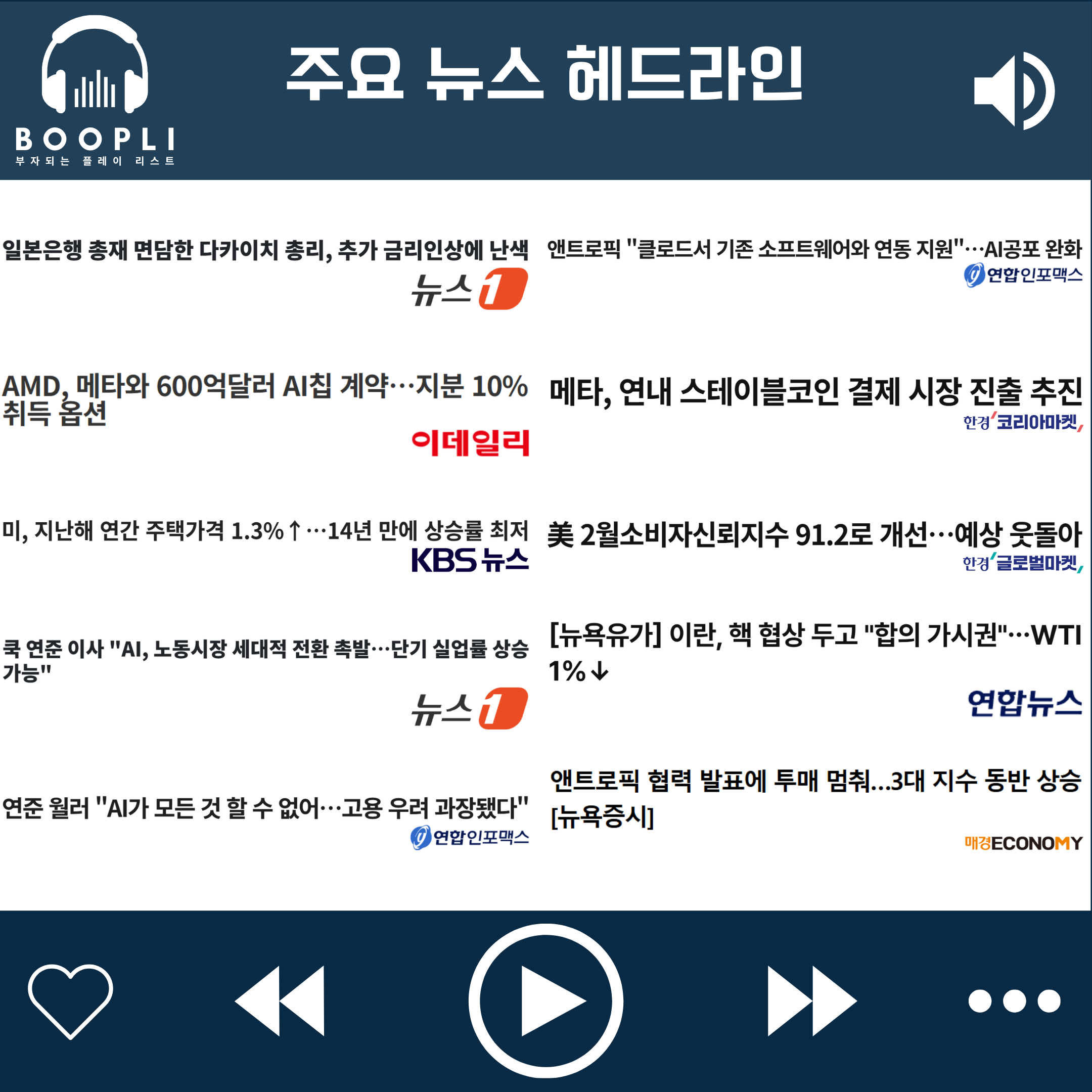 한편, 반도체 업종에서는 AMD가 메타와의 계약 체결 소식에 상승했고, TSMC 등 일부 AI 인프라 관련 종목도 동반 강세를 나타남