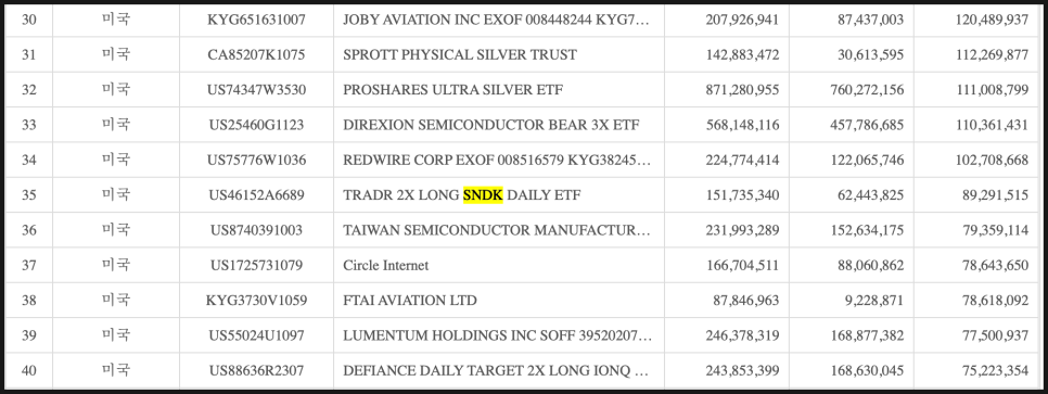 실제로 샌디스크는 2026년에 해외 투자자들이 가장 많이 매수한 해외 주식 3위에 올라 있습니다.