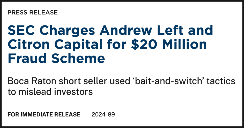 사실 시트론 리서치와 창립자 앤드류 레프트(Andrew Left)는 최근 몇 년 동안 큰 법적 문제에 직면해 있습니다.
