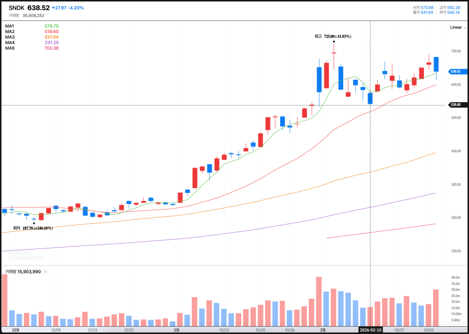 이제 샌디스크(SNDK) 본주로 돌아와서 차트를 보겠습니다.