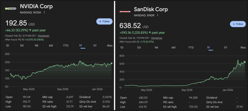 샌디스크 주식을 살 바엔 엔비디아 주식을 사겠다는 얘기죠.