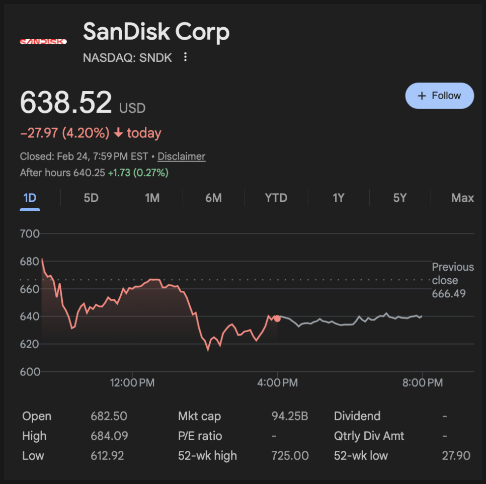 웨스턴디지털은 오랫동안 샌디스크의 주요 투자자였는데, 최근 지분 일부를 25% 낮은 가격에서 매도했습니다. 그리고 그 돈으로 부채를 상환하겠다고 했습니다.