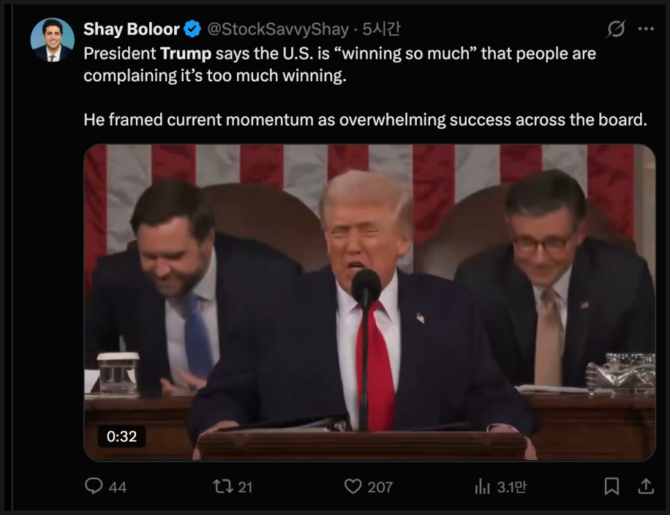 달러 약세도 중요한 변수입니다. 블룸버그 달러 현물 지수는 도널드 트럼프 대통령의 국정연설 이후 소폭 하락했습니다. 트럼프 대통령은 대법원이 글로벌 수입 관세를 무효화했음에도 불구하고 관세 정책을 다시 밀어붙이겠다고 밝혔고, 나아가 관세로 소득세를 대체할 수 있다는 언급까지 했습니다. 정책 불확실성이 달러에 부담을 준 셈입니다.