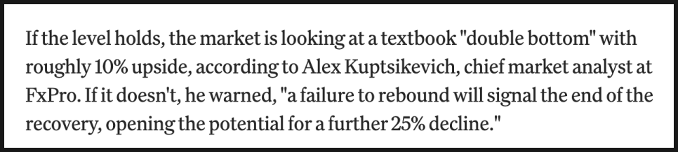 앞서 언급한 애널리스트인 알렉스 쿠프치케비치 역시 바닥이 아직 확정됐다고 보지 않습니다. 그는 “진짜 항복 매도는 아직 오지 않았다”고 표현했습니다. 항복 매도라는 것은 투자자들이 더 이상 버티지 못하고 대거 손절하는 구간을 의미하는데요. 시장이 완전히 체념한 뒤에야 진짜 바닥이 나오는 경우가 많다는 전통적인 관점입니다.