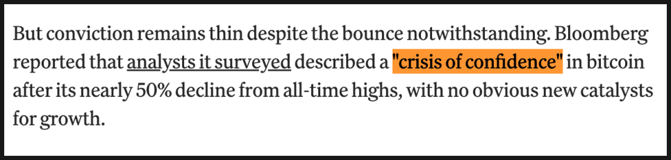 무엇보다 심리적인 부분이 걸립니다. 블룸버그가 인용한 애널리스트들에 따르면, 비트코인이 사상 최고가 대비 거의 50% 가까이 하락하면서 시장에 ‘신뢰의 위기’가 나타났다는 평가입니다. 뚜렷한 신규 촉매가 없는 상황에서 단순 기술적 반등만으로 추세 전환을 단정하기 어렵다는 이야기입니다.