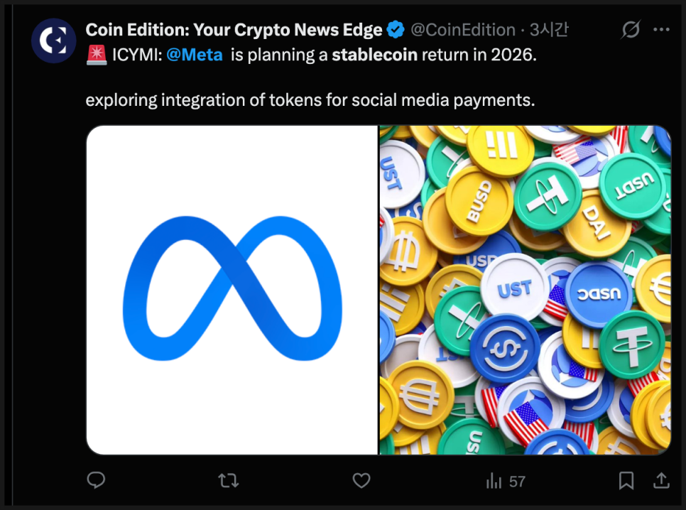 동시에 경쟁 구도도 분명합니다. 일론 머스크의 X와 텔레그램 역시 결제를 내재화해 이른바 슈퍼앱으로 가려는 전략을 펼치고 있습니다. 메타가 다시 스테이블코인을 도입한다면, 플랫폼 간 결제 생태계 경쟁이 본격화될 가능성이 있습니다.