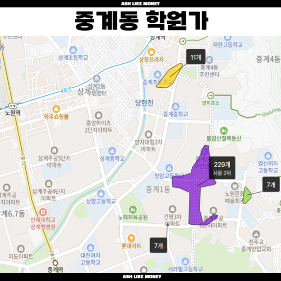 노원구는 서울의 외곽에 위치한 지역으로 노원구, 도봉구, 강북구 3곳이 1개로 묶여 노도강이라 불린다. 노원구는 노도강 중에서 중계동, 월계동의 경우 서울 3대 학군으로 유명하다. 서울 3대 학군하면 강남의 대치동, 양천구의 목동, 노원구의 중계동이 유명하고 학군으로 유명한 동네는 한정된 사람들만 모이다보니 비싼 집값을 유지하고 있다. 오죽하면 대치동의 경우 대치동 라이딩이나 방학 때 지방에 올라오는 사람들이 있을 정도로 유명하며 은마아파트 같은 50년 이상의 아파트에 대치동 학군을 이용하려고 전세를 이용한다. 그만큼 한국에서 학군은 중요하다.