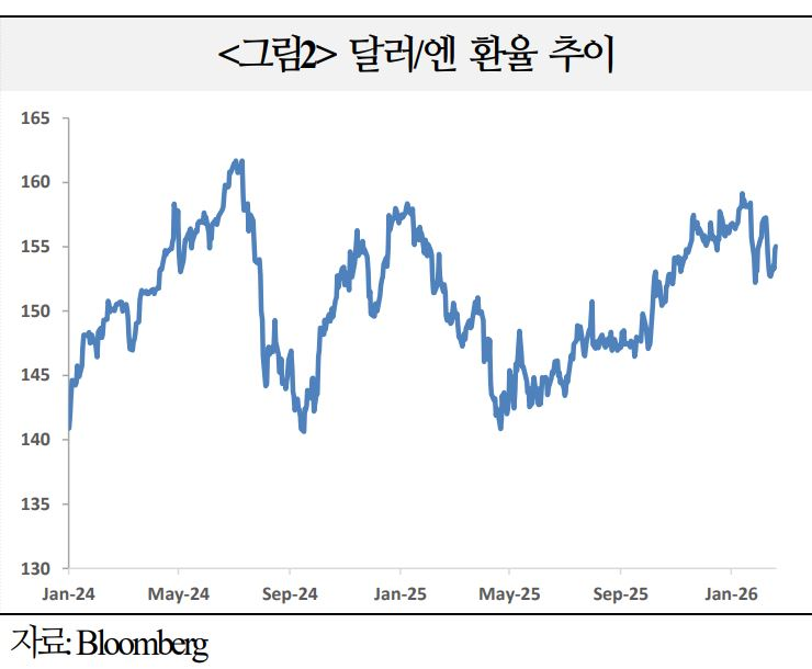 ㅇ 달러/엔 환율은 1월 27일 152엔에서 2월 9일 157엔으로 급등 후 155엔 내외에서 등락을 반복하며 엔화 약세 흐름이 지속
