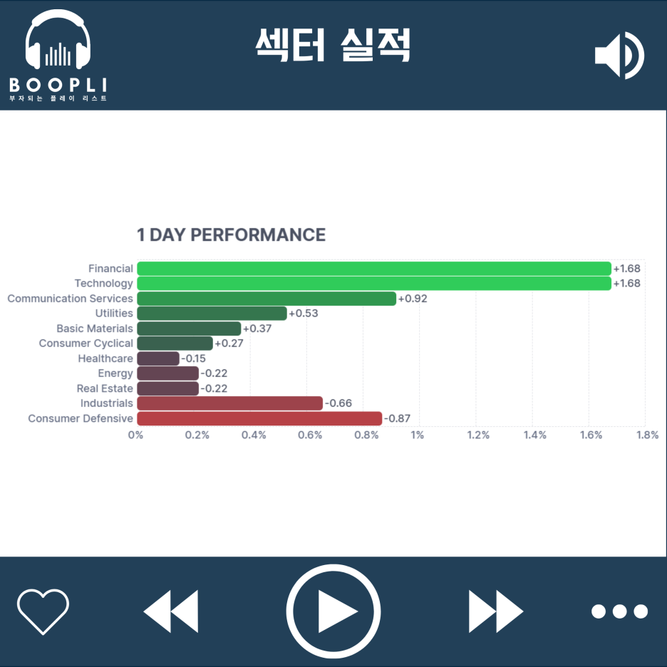 엔비디아 실적 기대와 AI 공포 완화로 위험자산 선호 심리가 개선되며 금융, 기술 섹터가 상승 주도, 이어서 커뮤니케이션 서비스, 유틸리티 순으로 강세