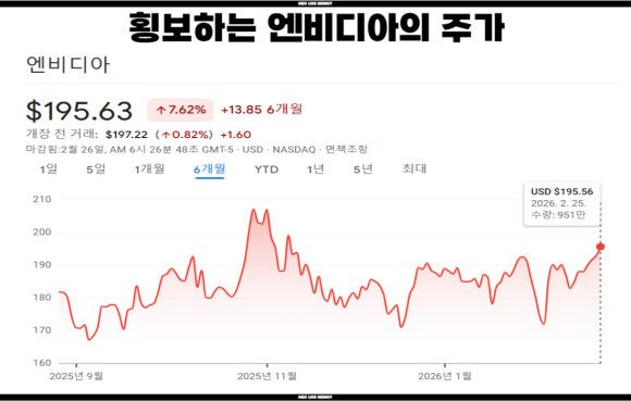 월가에선 엔비디아의 목표 주가를 275달러로 현재 195달러보다 80달러 이상 높게 설정했다. 엔비디아의 26년 주가상승은 겨우 4.5%에 그쳤다. 이는 AI버블에 대한 우려로 마이크로소프트, 메타의 서로 다른 행적, AMD나 구글이 실적이 좋게 나왔음에도 불구하고 CAPEX 문제로 주가가 조정받고 아마존 역시 떨어진 것을 보면 빅테크라도 미국 하락장엔 이길 수 없는 모습을 보인다.