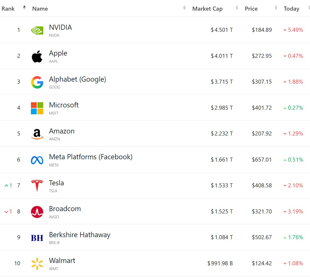 애플 -0.47%, 알파벳 -1.76%, 아마존 -1.29%, 테슬라 -2.11% 하락하였으며, 반면 마이크로소프트 +0.28%, 메타 +0.51% 상승하면서 장을 마감하였습니다.