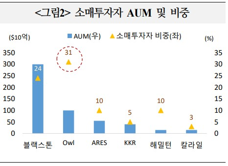 ㅇ 사모대출 차주 구성에서 소매투자자(private wealth: 고액자산가, 패밀리오피스 등) 비중이 큰 펀드의 경우, 블루아울처럼 투자자 심리에 민감하게 반응할 리스크가 있다는 점도 평가에 있어 새롭게 부각